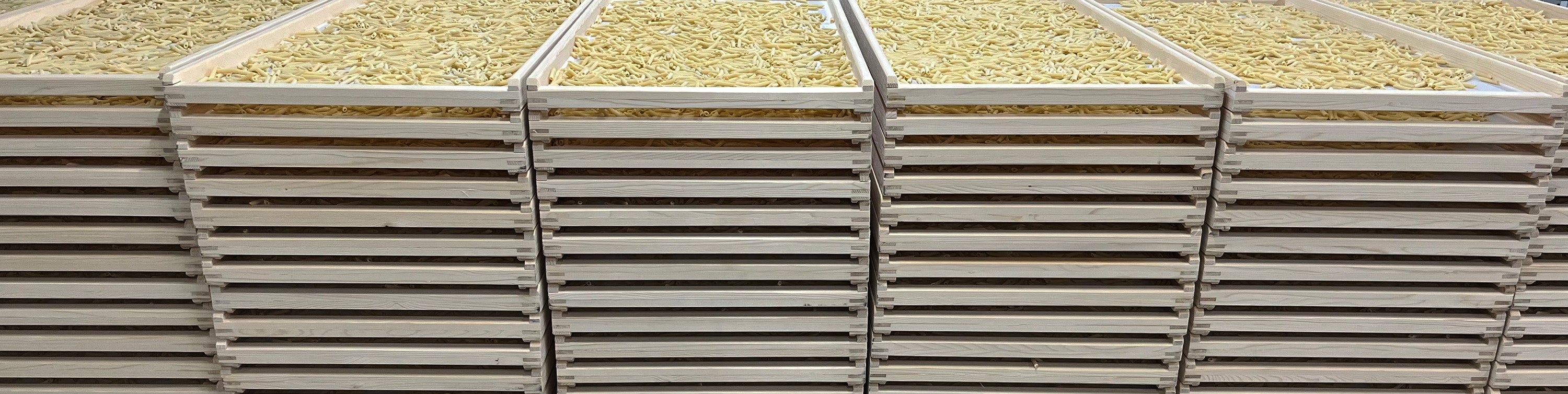 Onze pasta is 100% Italiaanse Durum Semolina tarwegries of regeneratieve bloem met water. Ambachtelijk geproduceerd, dus langzaam geperst door Bronzen matrijzen, met de hand gespreid en klaargemaakt voor droogkamers en dan op lage temperatuur gedroogd.